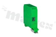 Installation terminal block; 1-level; 2-contacts; for wire 4-35mm2; screw terminal; green; Din rail; 690V/125A