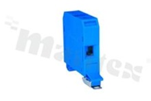 Installation terminal block; 1-level; 2-contacts; for wire 4-35mm2; screw terminal; blue; Din rail; 690V/125A