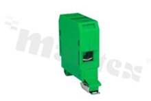 Installation terminal block; 1-level; 2-contacts; for wire 4-25mm2; screw terminal; yellow-green; Din rail; 690V/101A