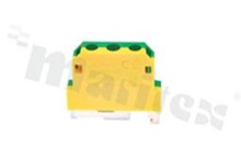 Installation terminal block; 1-level; 2-contacts; for wire 1.5-10.0mm2; screw terminal; yellow-green; Din rail; 690V