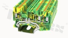 Installation terminal block; 1-level; through; 3-contacts for wire 0.2-4.0mm2 (26-12AWG); spring-loaded; yellow-green; for DIN rail