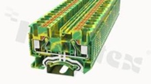 Installation terminal block; 1-level; through; 2-contacts for wire 0.5-10.0mm2 (20-8AWG); spring-loaded; yellow-green; for DIN rail; 1000V/41A