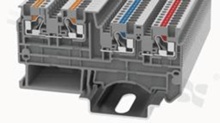 Installation terminal block; 2-level; through; 4-contacts for wire 0.14-1.5mm2 (26-16AWG); spring-loaded; grey; for DIN rail; 500V/16A